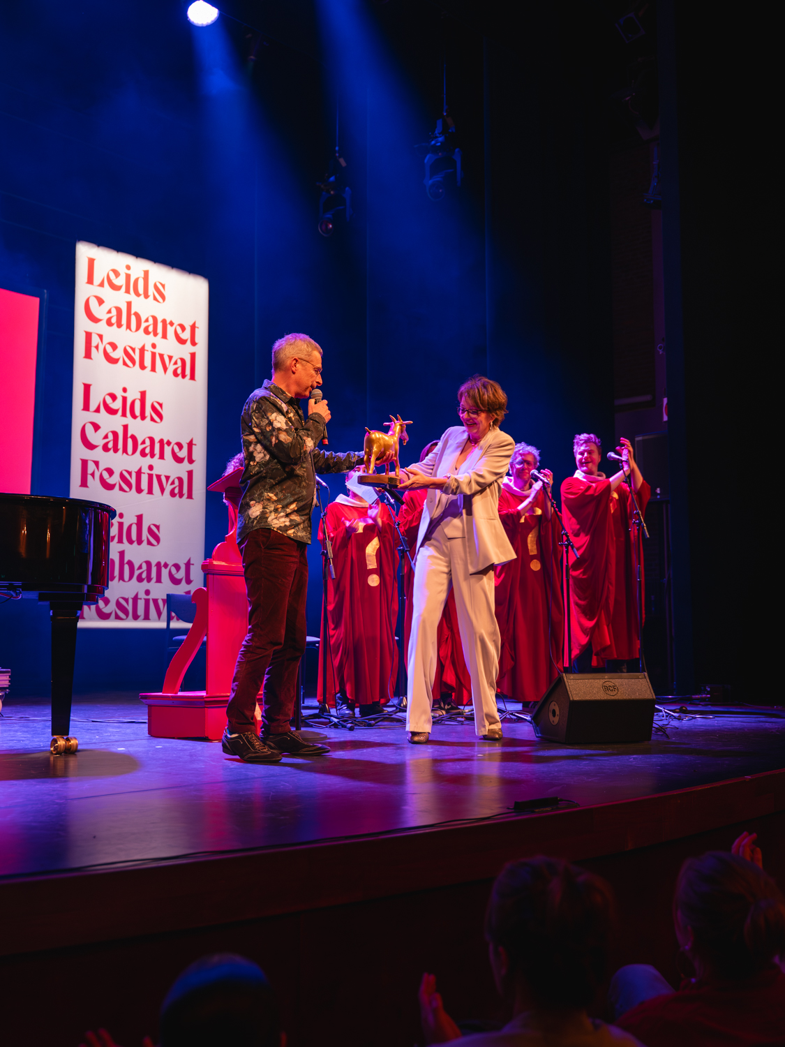 De presentatie was in handen van Sanne Wallis de Vries, die dertig jaar geleden zelf het Leids Cabaret Festival heeft gewonnen. Na het gastoptreden van Ode aan de Twijfelaar, kreeg zij van Lebbis (Hans Sibbel) de eerste Gouden Geit uitgereikt. Vanaf volgend jaar is de Gouden Geit de Juryprijs en wordt het Leids Cabaret Festival logo uitgebreid met een embleem van een geitje.