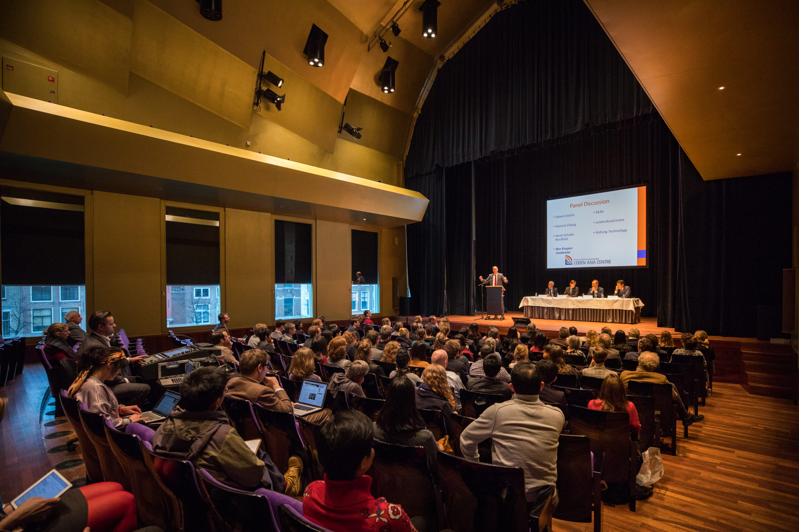 De Aalmarktzaal is een lichte, ruime zaal met veel mogelijkheden. Dankzij het natuurlijke daglicht en de eigen foyer met garderobe heeft de ruimte een open en uitnodigende sfeer. Omdat de zaal volledig los te huren is van de rest van de Stadsgehoorzaal, biedt de ruimte veel privacy en flexibiliteit. Of het nu gaat om een symposium, een bedrijfspresentatie of een andere zakelijke bijeenkomst.