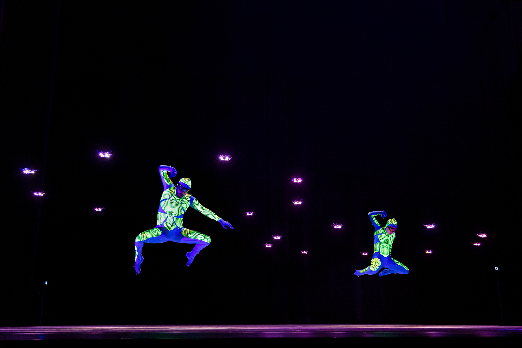 Another Kind of Blue presents a unique program that brings together highlights from previous productions alongside brand-new creations. In The Fly Blue Tour, dance and technology once again merge into a visual and emotional spectacle that surprises and innovates.